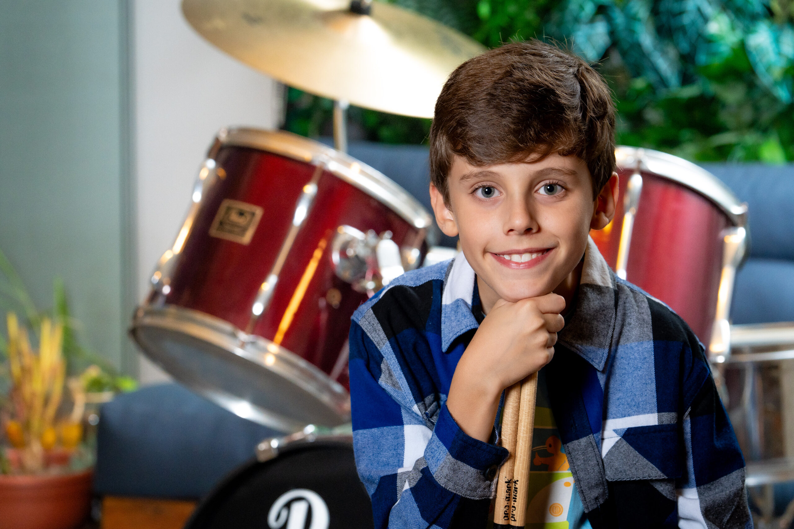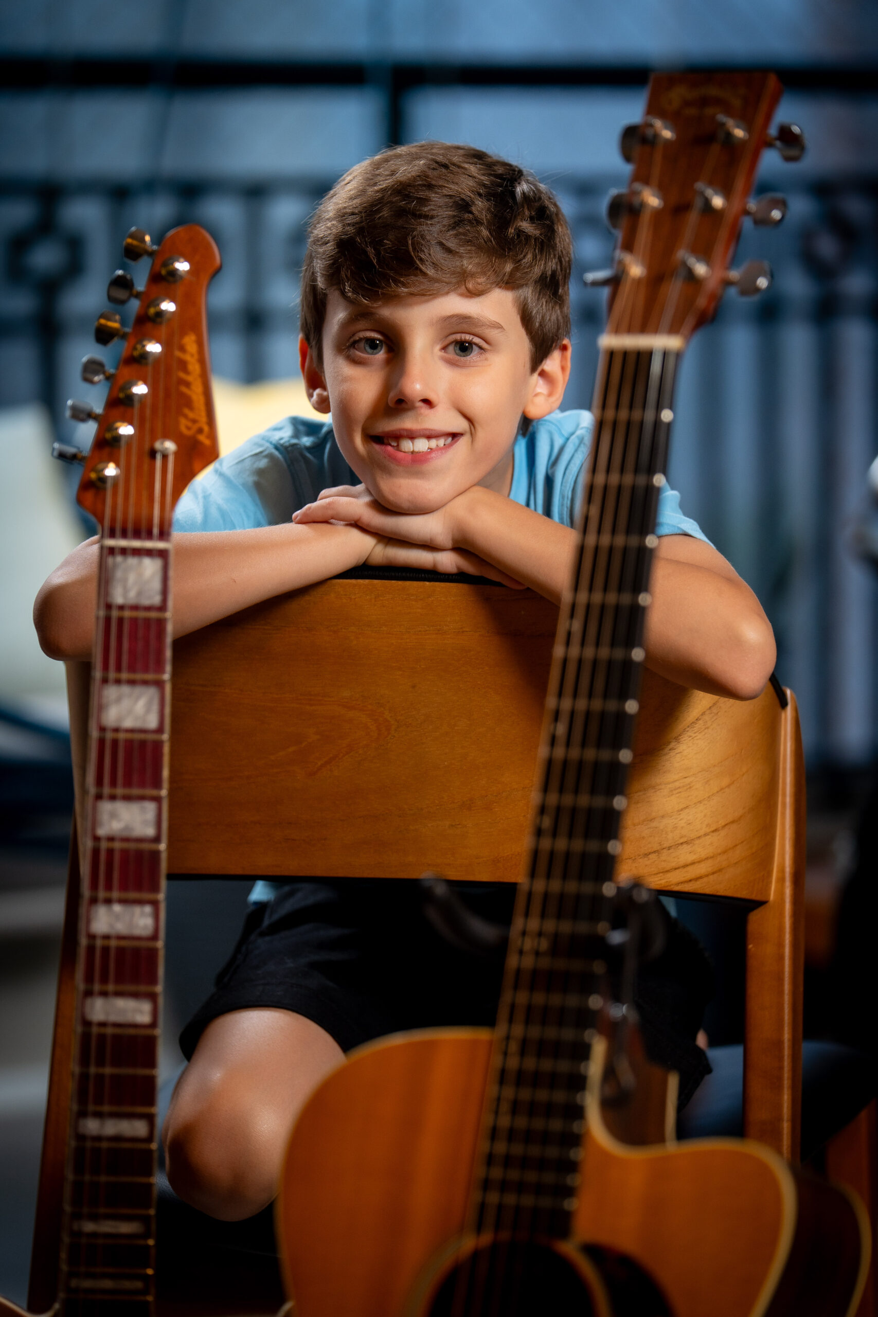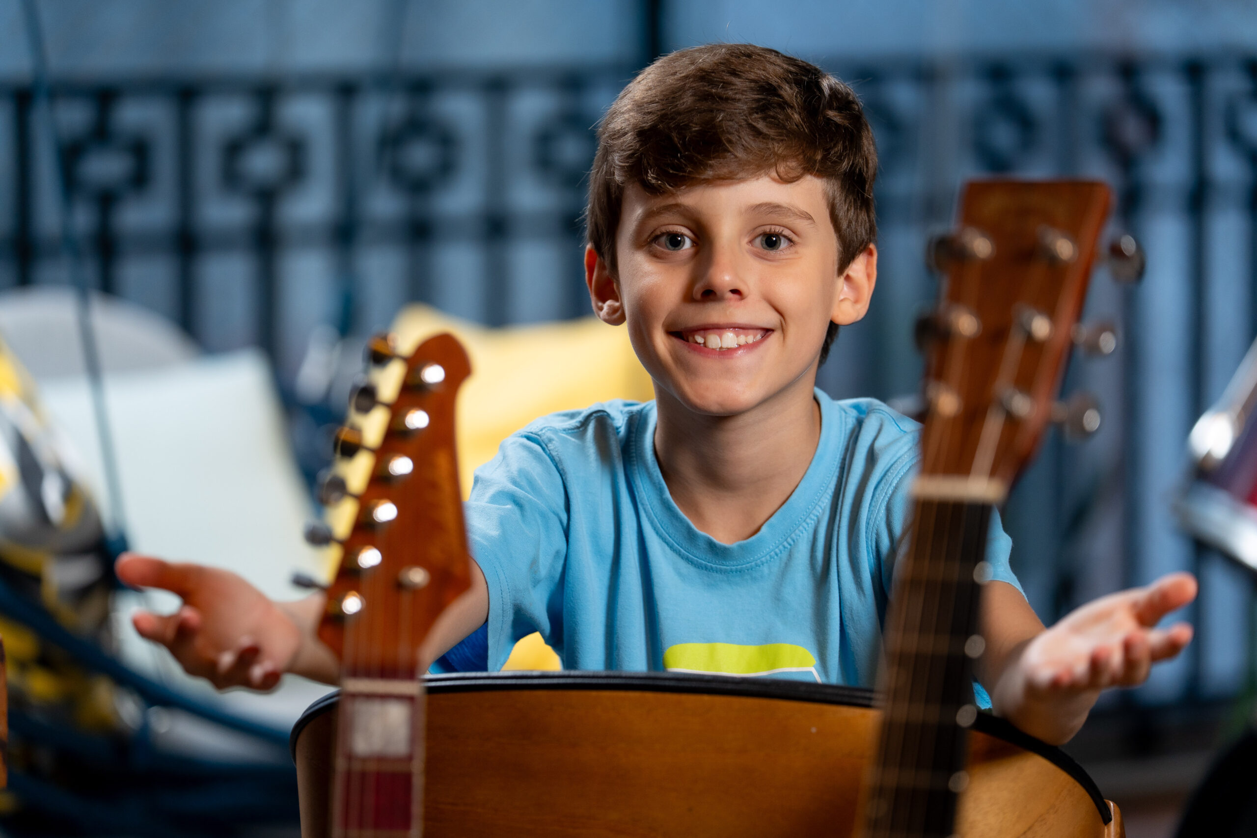 Ele é uma menino muito sapeca que montou uma banda com seus amigos da vizinhança! Eles adoram rock roll e vão tocar suas guitarras no volume máximo, pra botar pra quebrar!