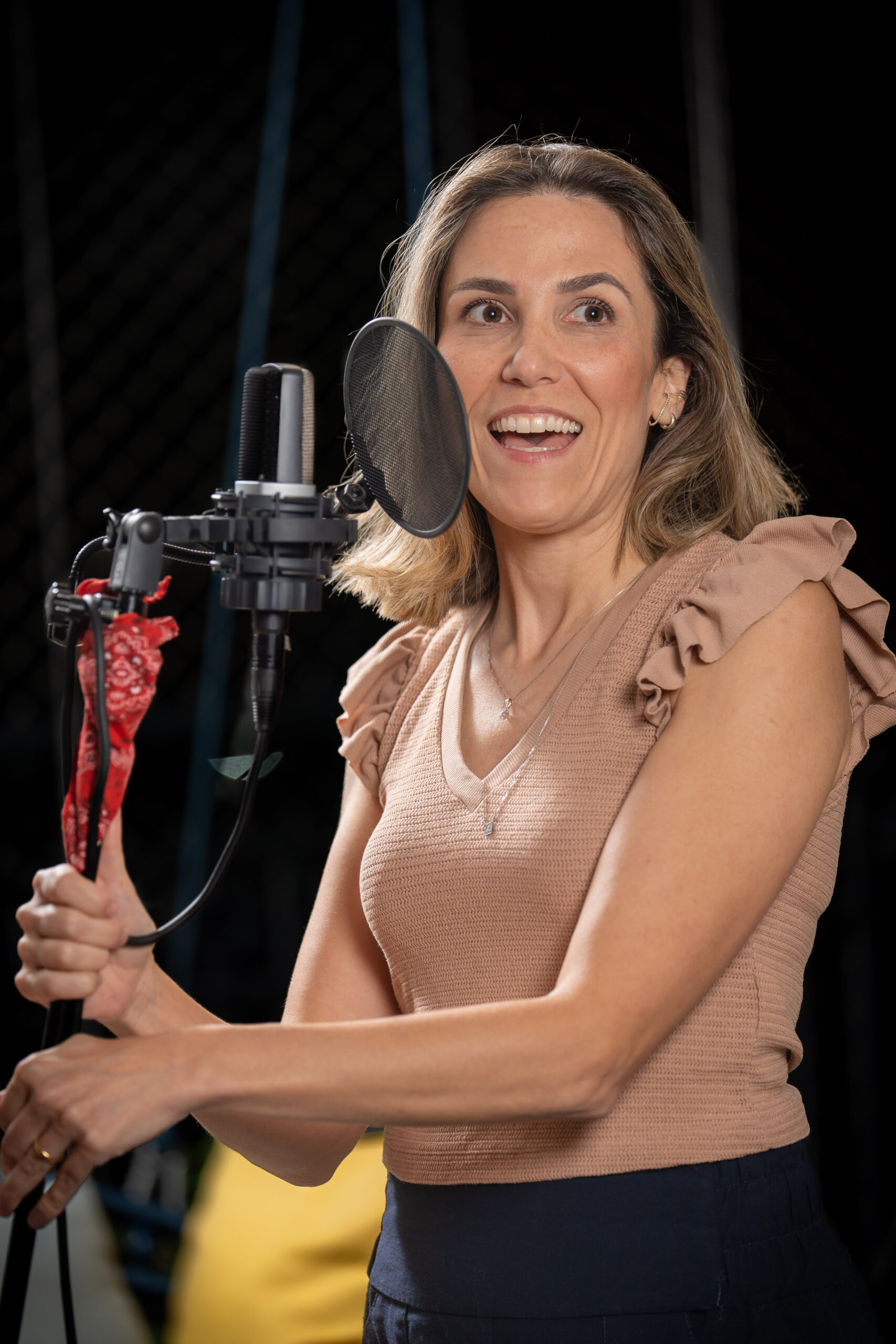 É a baixista da banda do Firinfa e os Fifos. Ela segura todos os graves com muita competência, jogo de cintura e alegria!